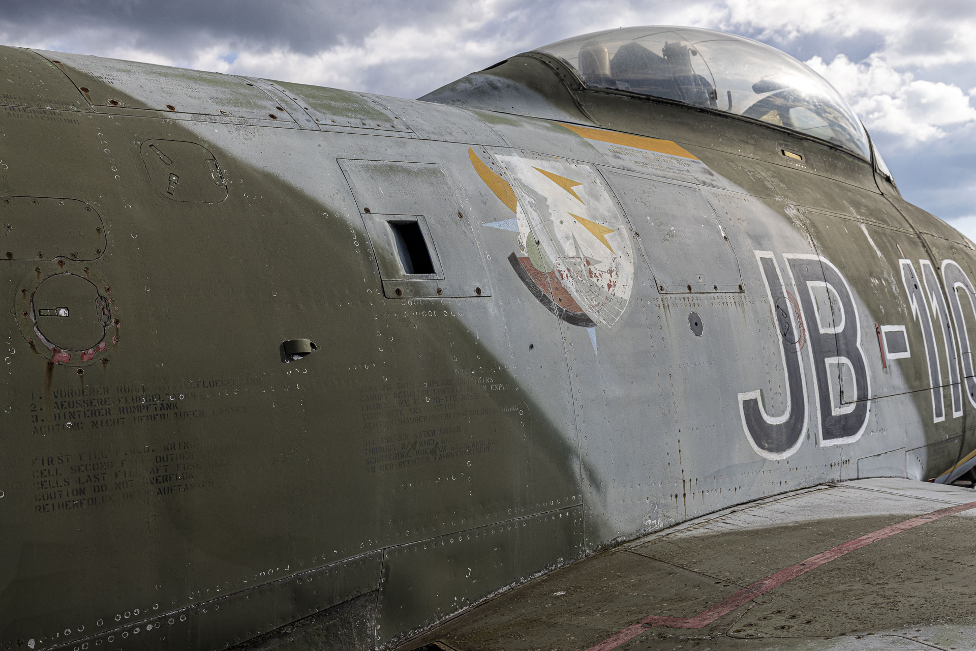 Der Walkaround behandelt die im Flugzeugmuseum Rothenburg ausgestellte und von Canadair hergestellte CL-13B Sabre Mk.6 "JB-110" mit der Werksnummer 1734 und ist eine Leihgabe des MHMBw Dresden.